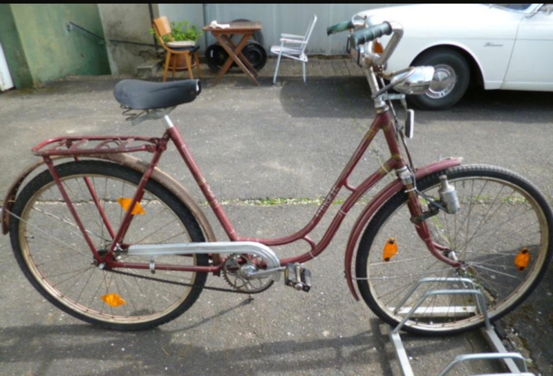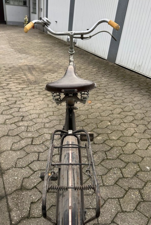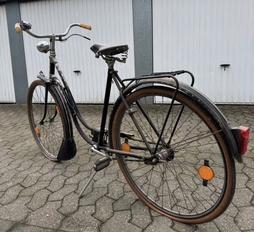 Bei Bekannten (Karl & Christa Beckers) hing noch das Fahrrad ihres Vaters an der Garagenwand. Zuletzt gefahren vor 2 Jahrzehnten. Der Vater, Josef Ix geb. 1910, kaufte es 1961 von seinem Chef (Hülsenfabrik Gebr. Dörner), der nicht mehr Fahrrad fahren wollte. Seinen Job als Maschinenmeister mußte Herr Ix 1967 aus gesundheitlichen Gründen aufgeben und ging in den Ruhestand.