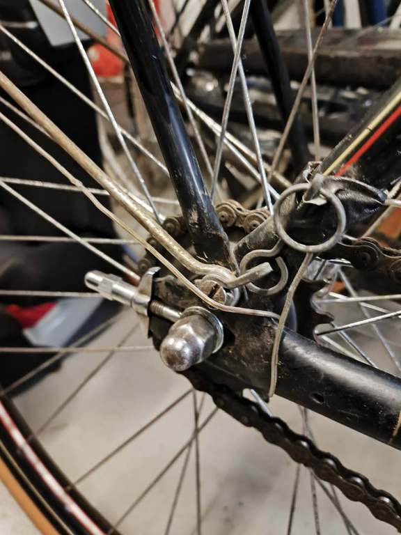 Ein Paar passende Alu Felgen fehlen noch und die nachträglich verbaute Torpedo Mod. 55 Schaltung muss auch durch eine Dreigang Kettenschaltung ersetzt werden. Die fand sich am Schlachtopfer aus Radevormwald.