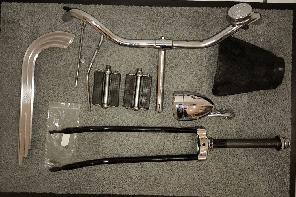 Das hintere Schutzblech, den Schutzblechreiter und einen Lenker mit originalen Griffen entnehme ich einem Schlachtrad aus Crailsheim.