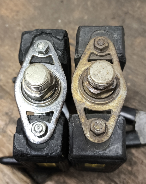 Eigentlich braucht man keine Worte. Der Unterschied ist auch ohne Erklärung gut zu erkennen. Die Metallteile haben 24Stunden in Zitronensäure gebadet. Hört sich gefährlich an aber Zitronensäure bekommt man in jedem Drogeriemarkt.