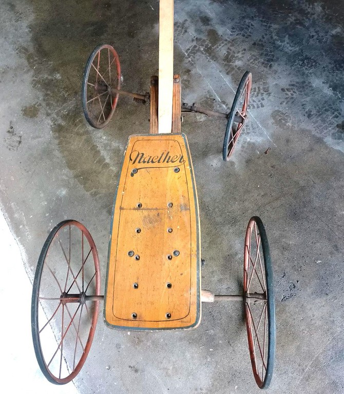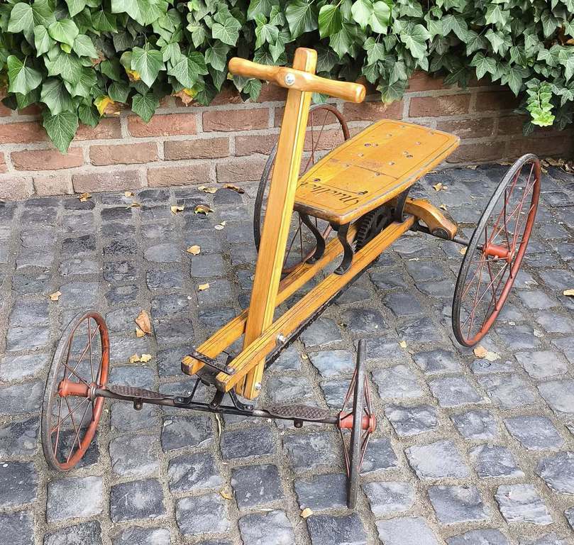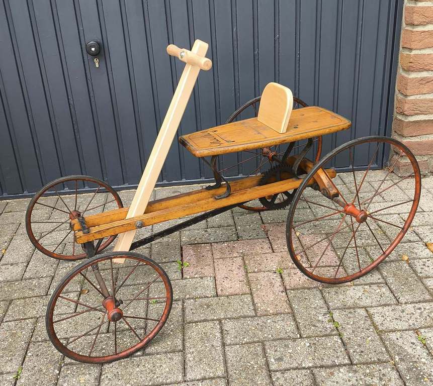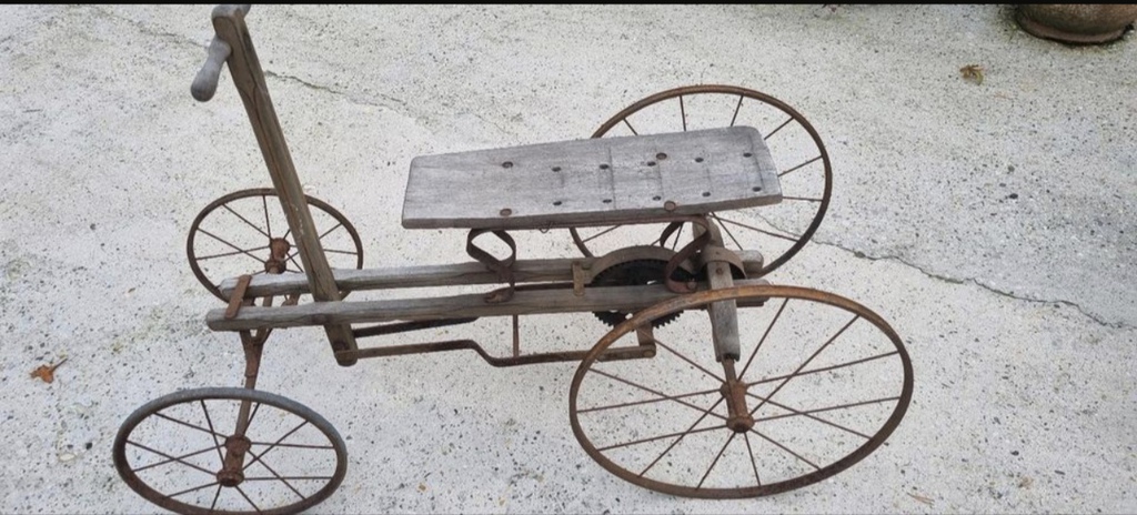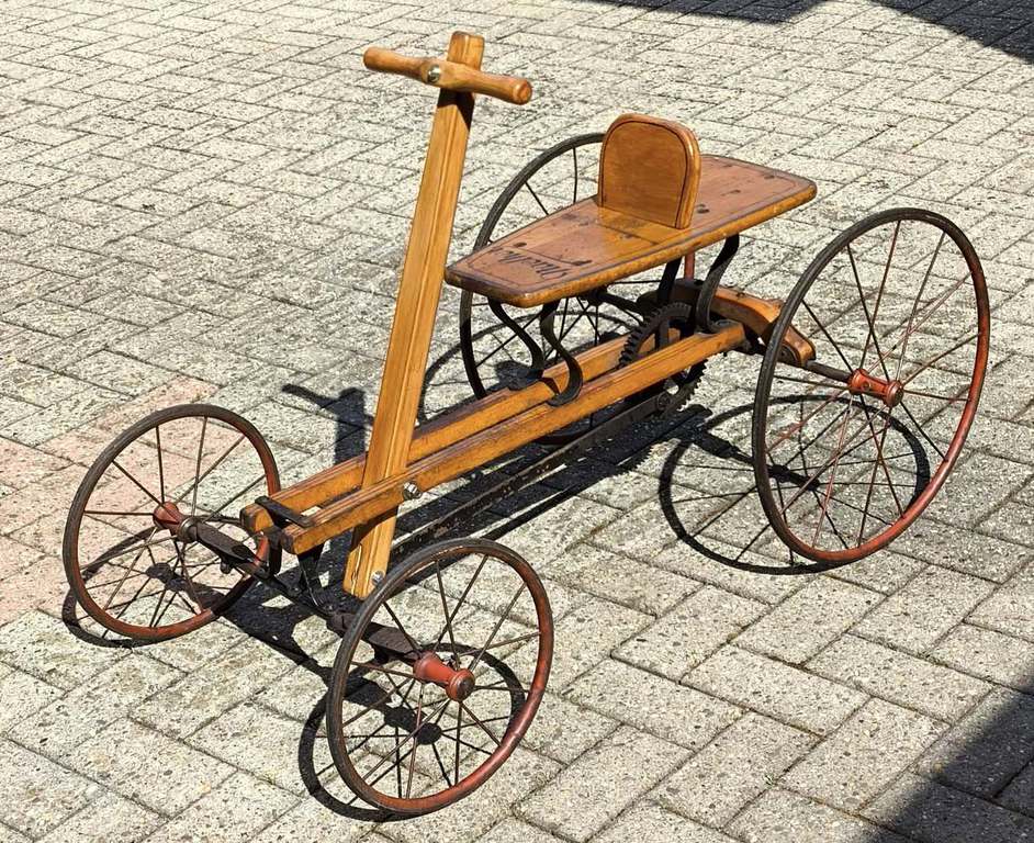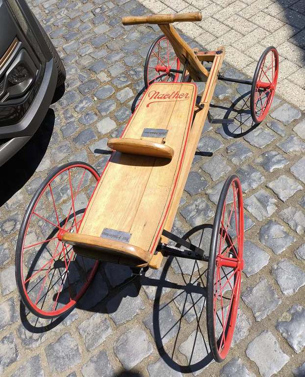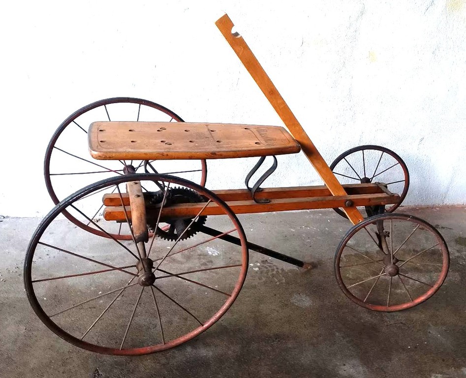 Das Gefährt stammt aus der Zeit zwischen 1910- 1920. Gefunden bei Ebay Kleinanzeigen, Standort Grevenbroich. Praktisch vor der Haustür! Ein "bisschen" muss gemacht werden, Die Sitzbank sollte verleimt und die Räder gerichtet werden. Mehr nicht!
