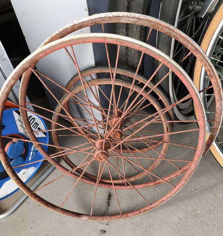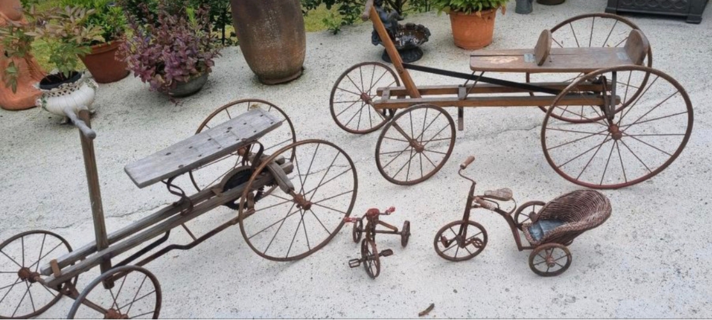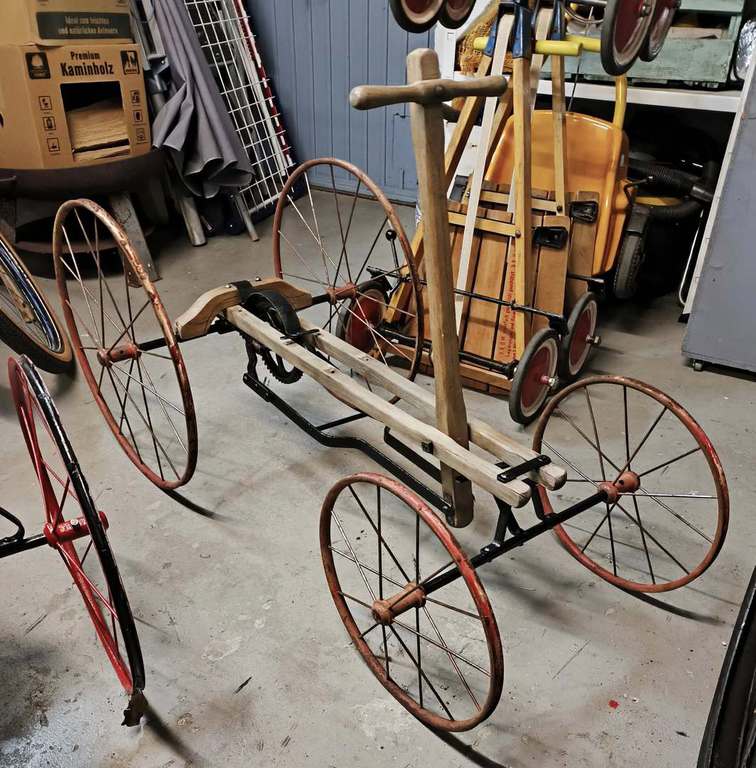 Natürlich kann ich nicht alles retten! Einen Versuch ist es aber wert. Die Gefährte wurden in den Kleinanzeigen angeboten und fanden keinen Interessenten. Daher war der Preis unschlagbar. Eigentlich sammel ich Kindergefährte nicht mehr. Wenn ich aber für meine Ausstellung im Bismarck Museum kostenneutral noch etwas ergattern kann, warum nicht.