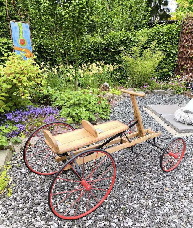 Ein ziemlich vernachlässigtes Dreirad bettelte um Erlösung. Nicht weit entfernt und sooooo süss! Jetzt muss unserer Haus und Hof Polsterer sich nur noch bereit erklären, das Sitzpolster aufzuarbeiten. Mal sehen was Robert T. dazu sagt.