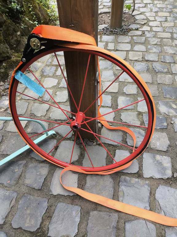 Unverhofft kommt oft, Zufallsfund in Mönchengladbach. Die Vorbesitzer angelten das Rädchen aus einem Schrottcontainer in Belgien. In ihrer Werkstatt landete es ganz oben im Regal. Um die Dimension zu verstehen, in einem anderen Regal lagert ein Gogomobil! Darunter stehen mehrere Oldtimerfahrzeuge wie z.B.: Citroen HY, Citroen DS usw.
